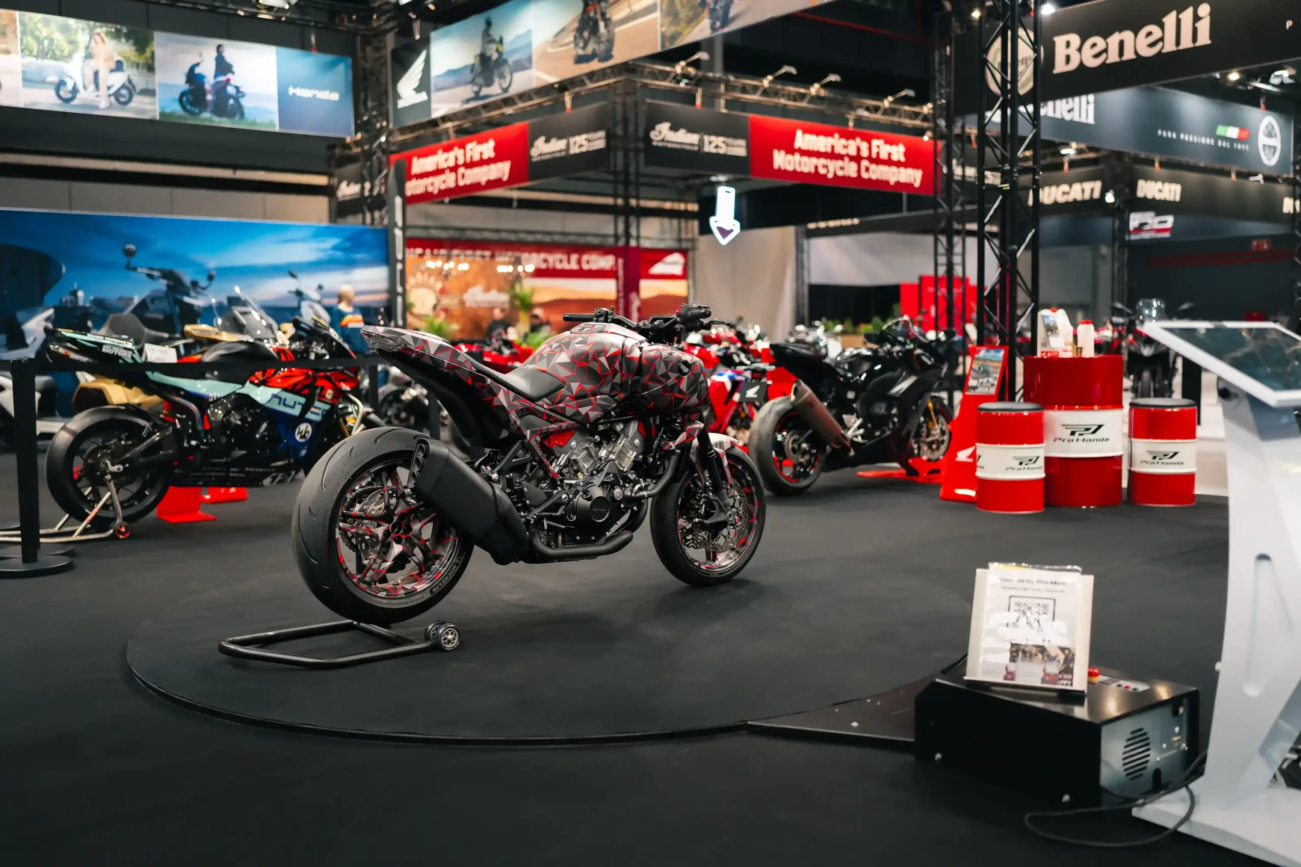 A turntable allows motorcycles to be presented automatically and professionally.